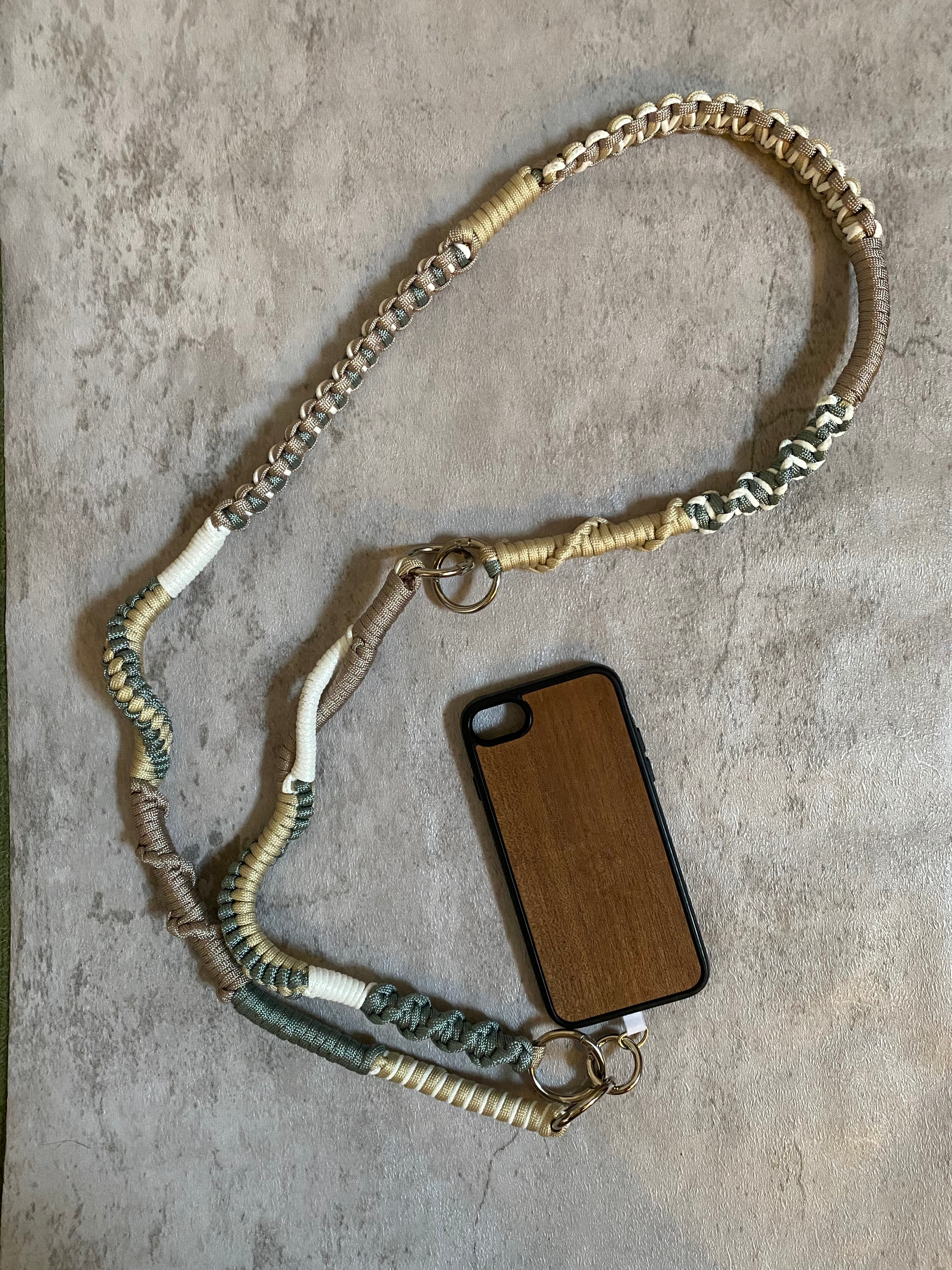 長いストラップと短いストラップを連結すると、スマホを斜め掛けできるショルダータイプになります。
