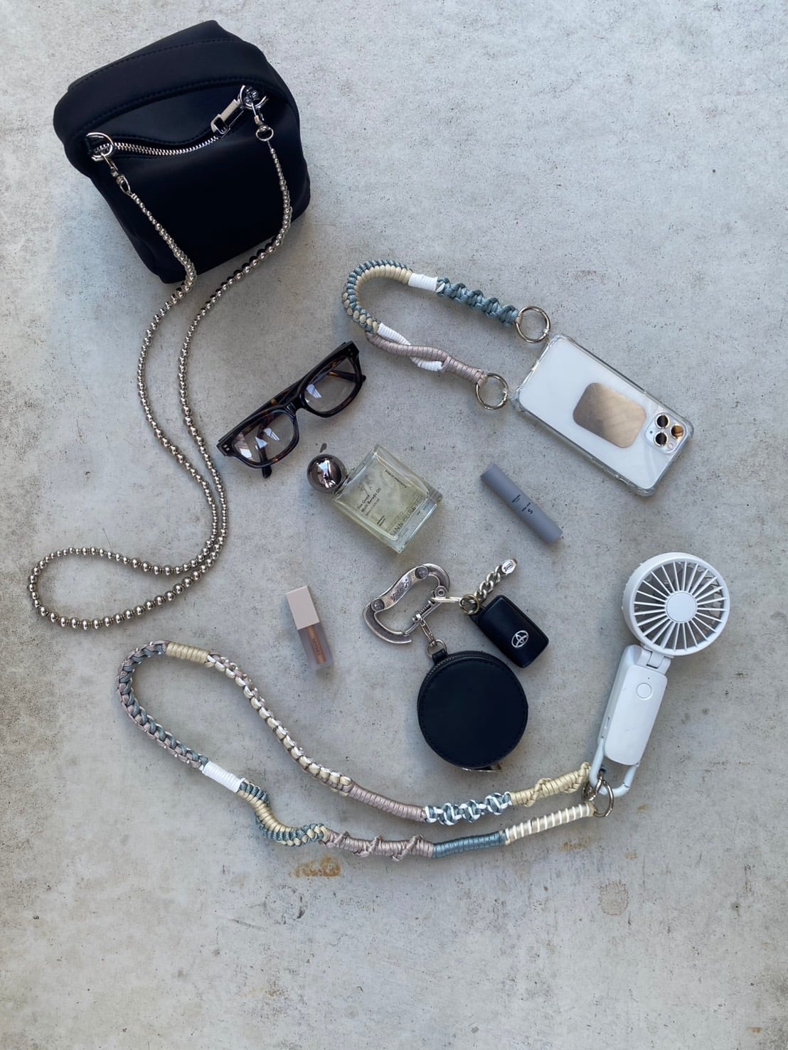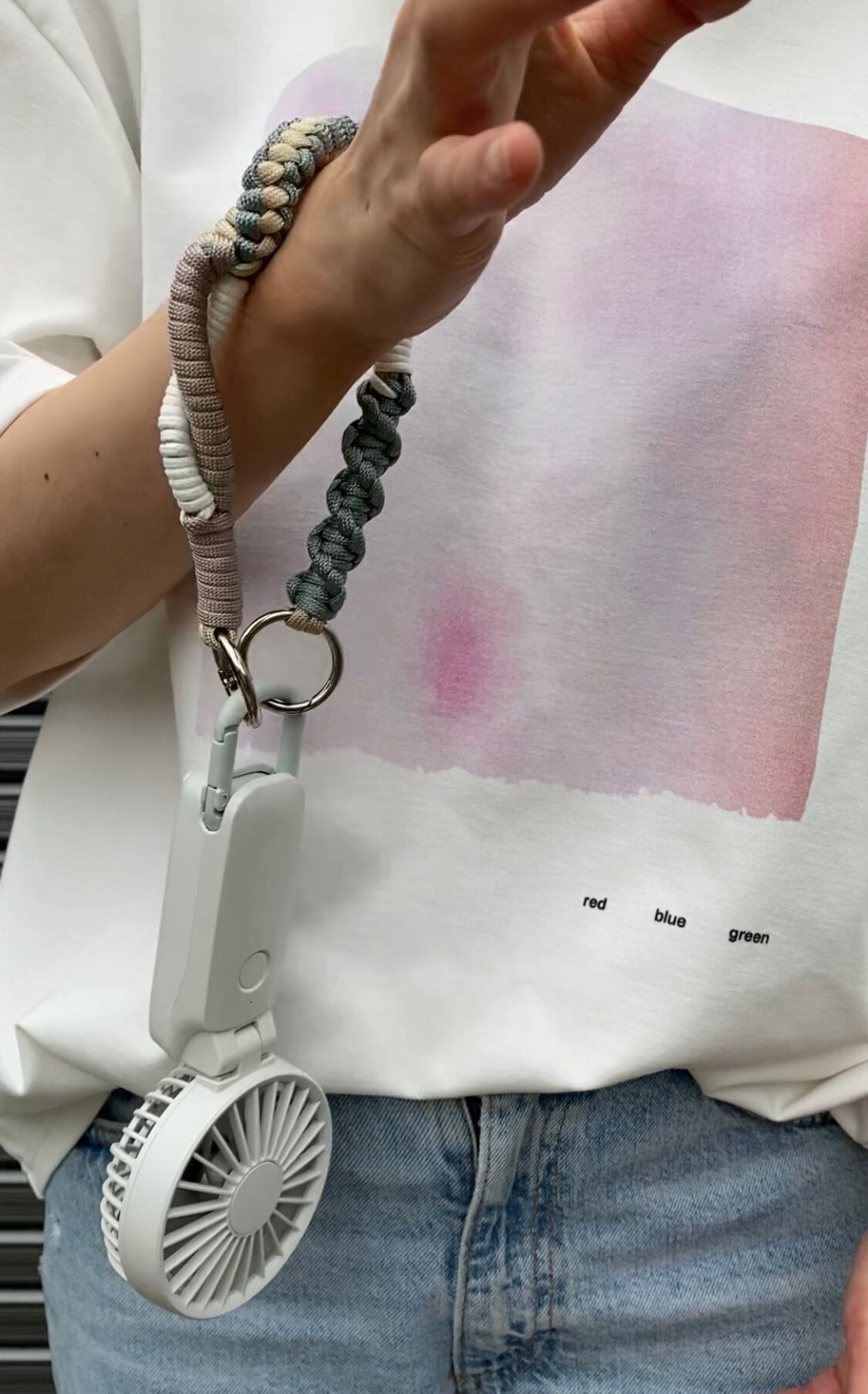 長いストラップ1本だけで、バッグやハンディ扇風機用のストラップとして使用できます。