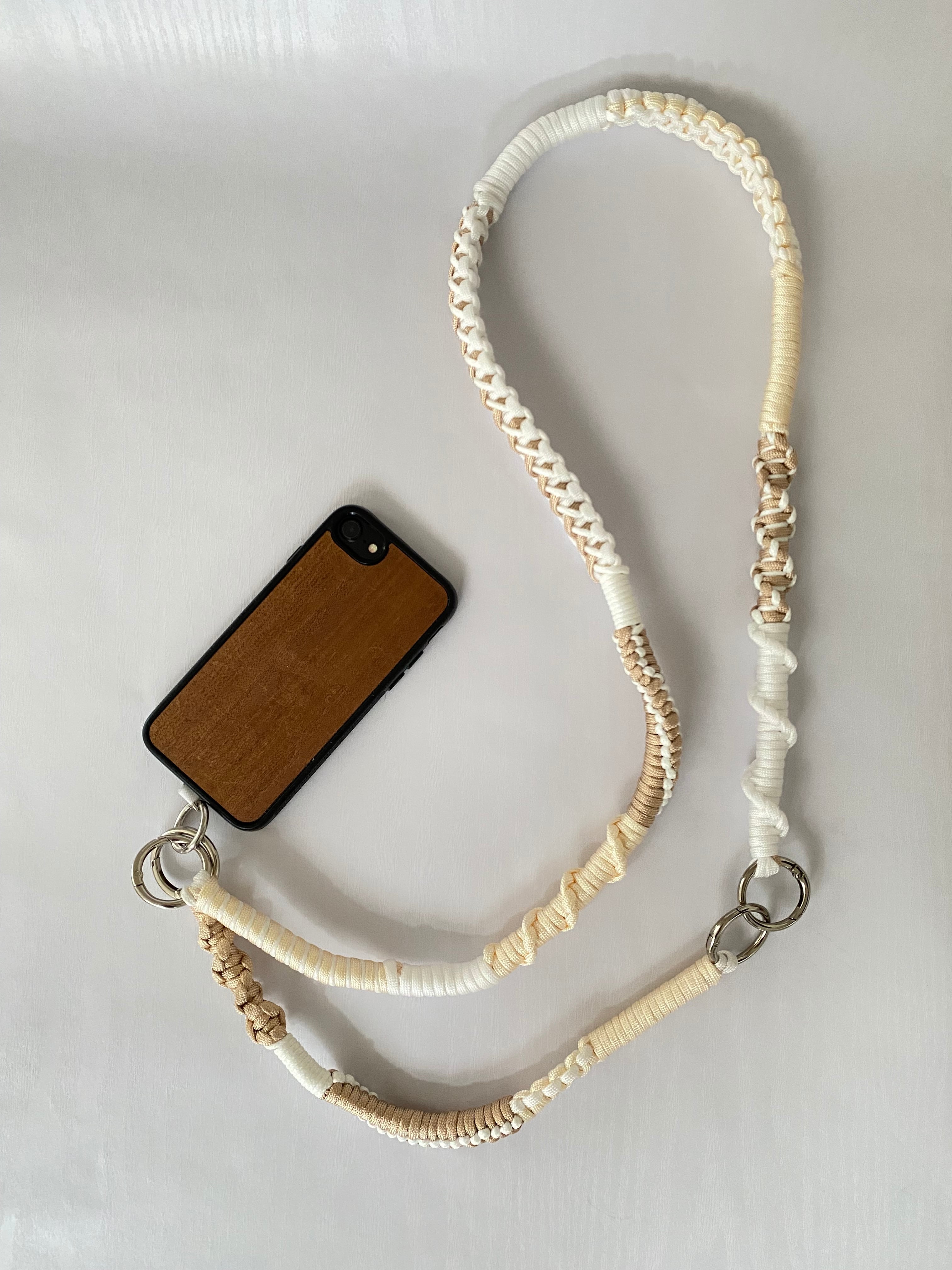 長いストラップと短いストラップを連結すると、スマホを斜め掛けできるショルダータイプになります。