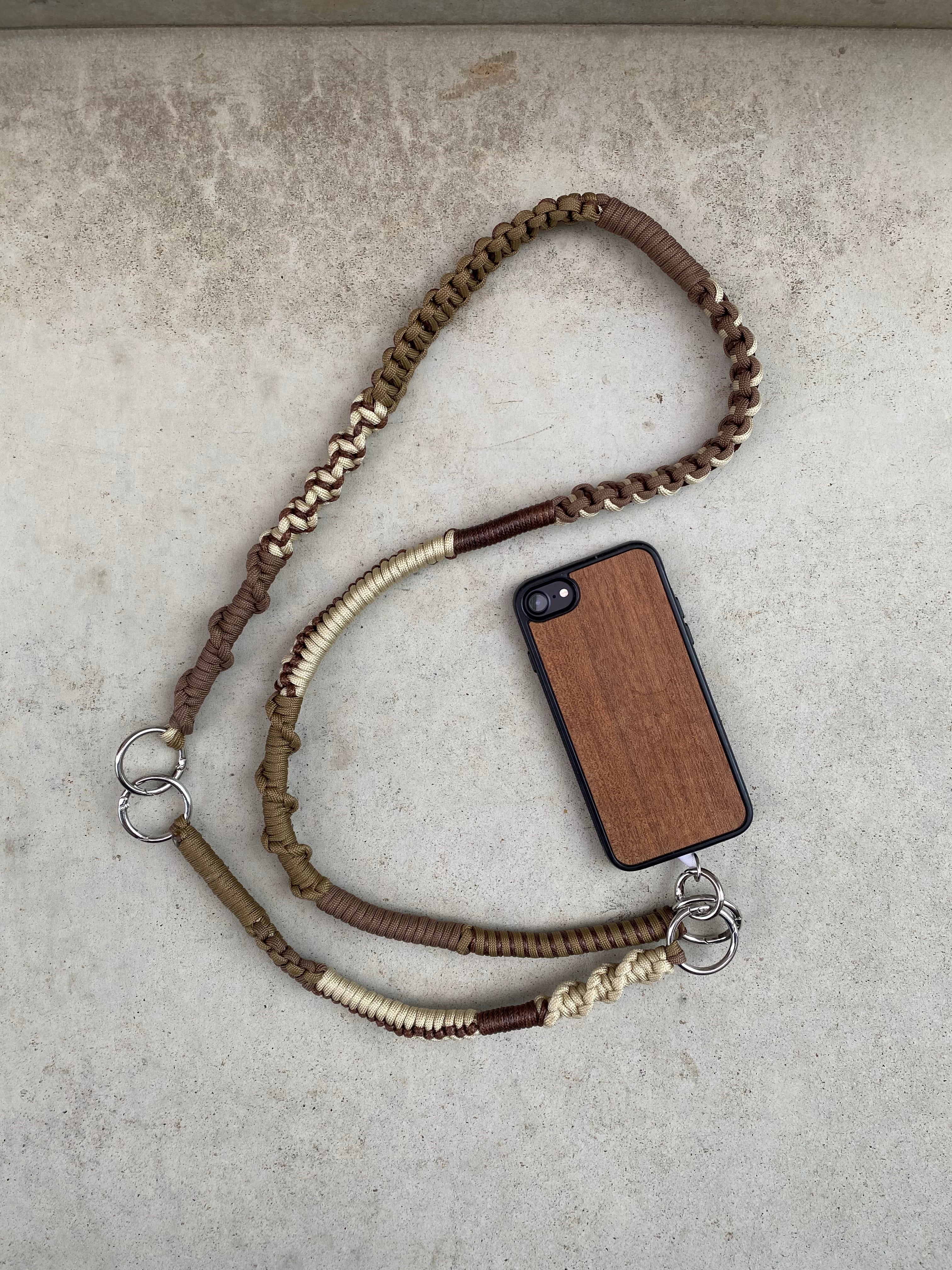 長いストラップと短いストラップを連結すると、スマホを斜め掛けできるショルダータイプになります。