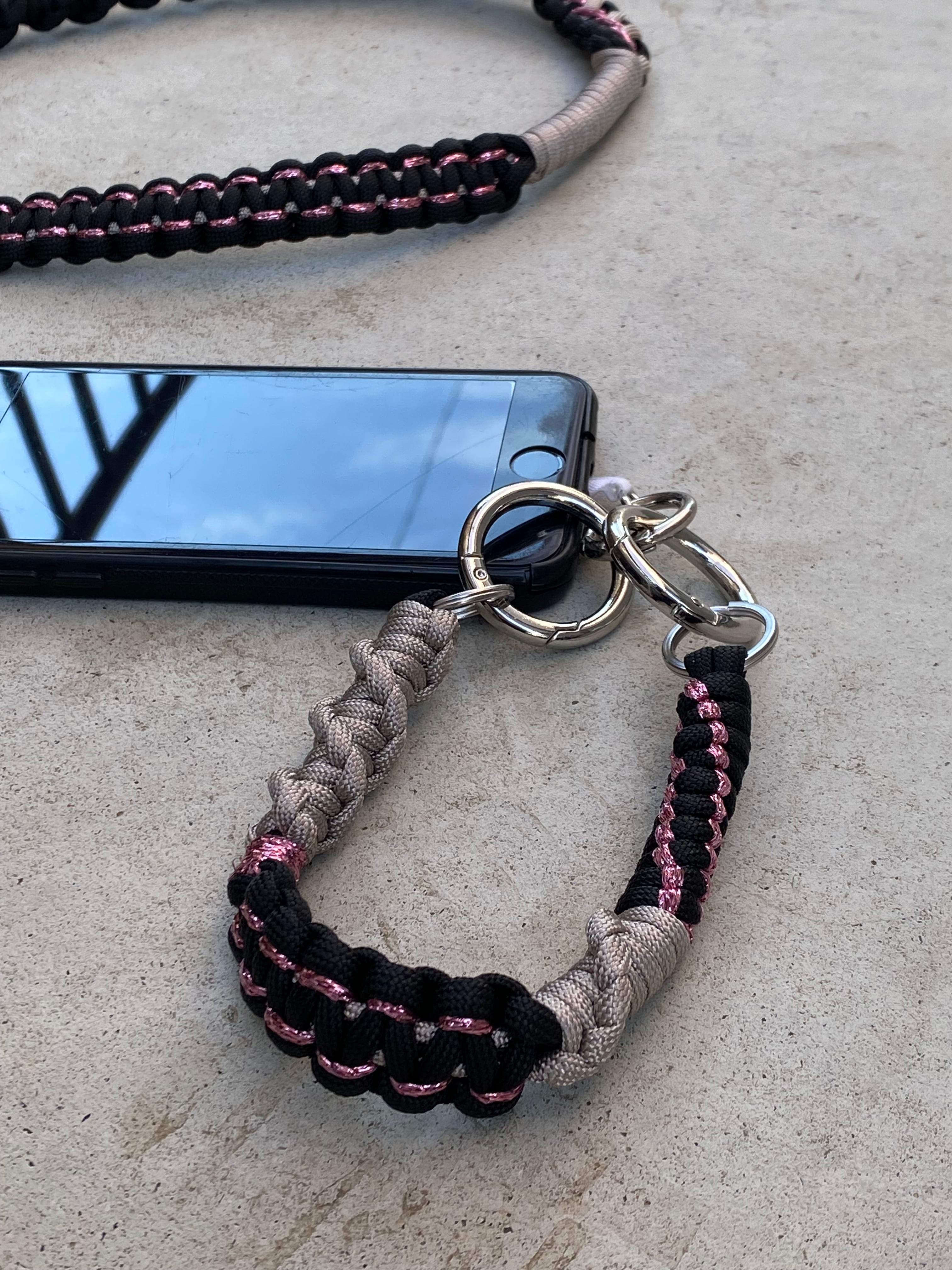 長いストラップと短いストラップを連結すると、スマホを斜め掛けできるショルダータイプになります。